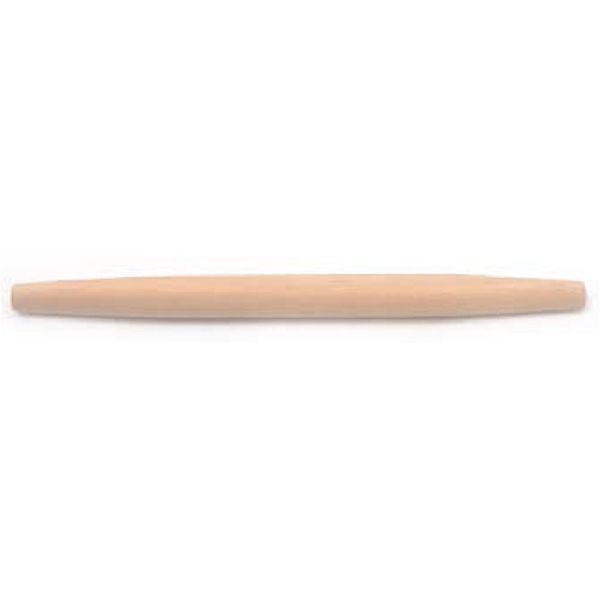 Natural beech wood rolling pin with tapered ends. Made in Germany.